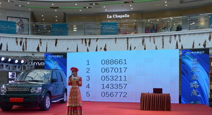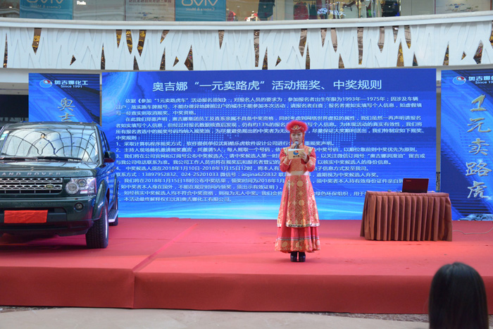 2018年1月9日上午,奧吉娜“一元賣路虎”搖獎活動在遼寧沈陽北一路萬達廣場隆重舉行。因公證機構不進行企業性質活動的公證,奧吉娜特請來多家權威媒體現場見證。搖獎本著公開公平公正原則進行,現場搖獎程序設計第三方服務公司對軟件設計的公平公正進行了鄭重聲明,主持人也多次宣讀搖獎、中獎規則。