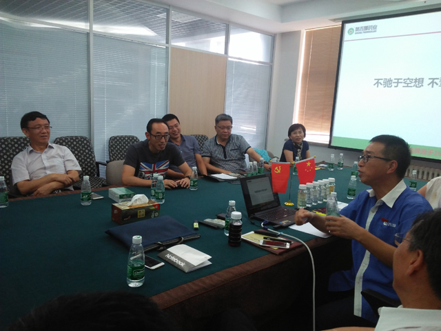 在奧吉娜多功能會議室,魏博士首先進行了奧吉娜研發技術成果分享,并與交流團校友進行了熱烈的討論,就自主科研、環保等達成了多項共識。