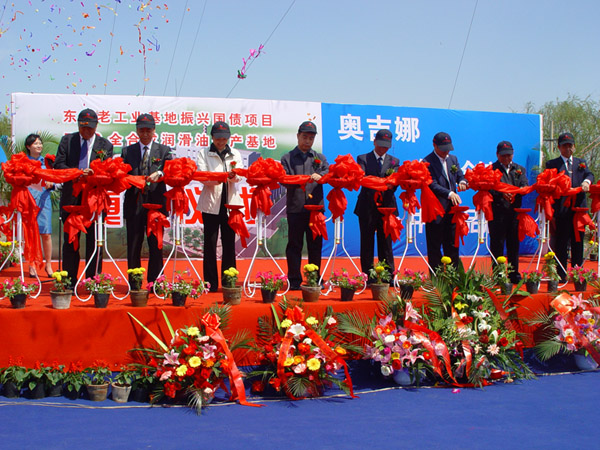 摘要:2006年 5 月 11 日上午9:59分,由沈陽奧吉娜化工有限公司承建的我國第一個 PAO 全合成潤滑油生產基地奠基儀式正式開始,國家發改委有關項目負責人,遼寧省政協,科協、沈陽市政府有關領導、金杯汽車股份公司、沈陽航天三菱發動機有限公司,航天新光發動機有限公司代表、曾與奧吉娜公司建立 “校企科研合作平臺”的大連理工大學代表及軍方代表、業界人士共同到場出席剪彩儀式。